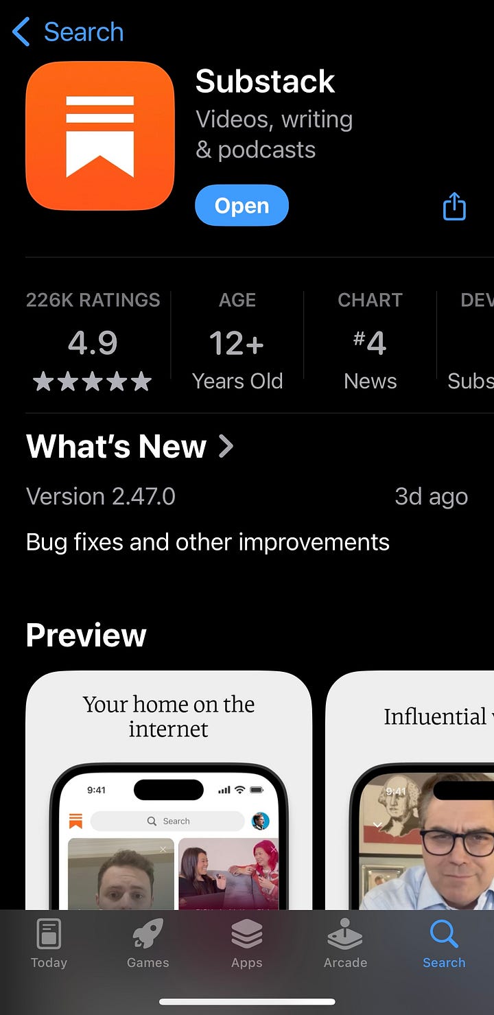 The Substack App, available for both iOS and Android users, offers a rich experience on the platform. Those of us of a certain age may prefer using our computers, but the App delivers features you will miss if you rely on visiting a writer’s Substack on the web via your laptop or receiving their updates by email.